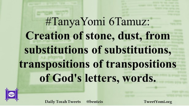 #TanyaYomi 6Tamuz: Creation of stone, dust, from substitutions of substitutions, transpositions of transpositions of God’s letters, words.