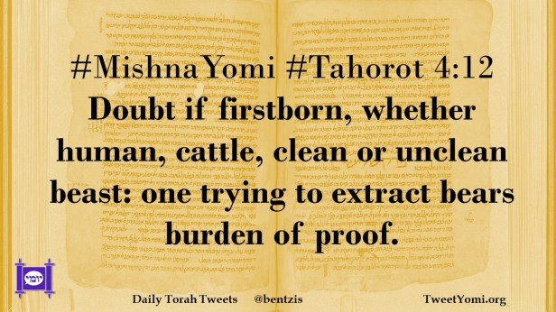 #MishnaYomi #Tahorot 4:12 Doubt if firstborn, whether human, cattle, clean or unclean beast: one trying to extract bears burden of proof.