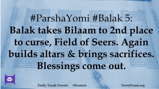 #ParshaYomi #Balak 5: Balak takes Bilaam to 2nd place to curse, Field of Seers. Again builds altars & brings sacrifices. Blessings come out.