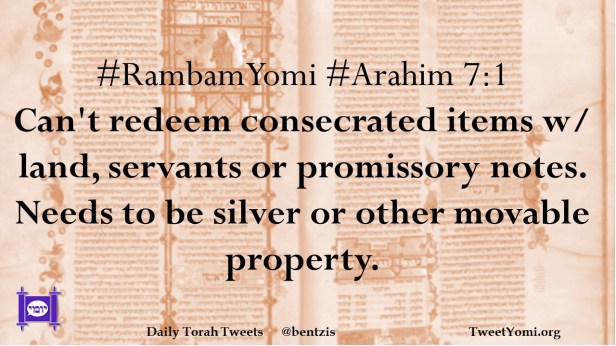 #RambamYomi #Arahim 7:1 Can’t redeem consecrated items w/ land, servants or promissory notes. Needs to be silver or other movable property.