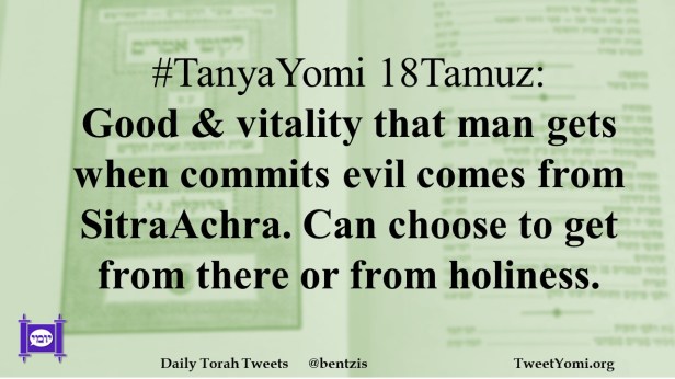#TanyaYomi 18Tamuz: Good & vitality that man gets when commits evil comes from SitraAchra. Can choose to get from there or from holiness.