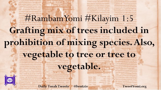 #RambamYomi #Kilayim 1:5 Grafting mix of trees included in prohibition of mixing species. Also, vegetable to tree or tree to vegetable.