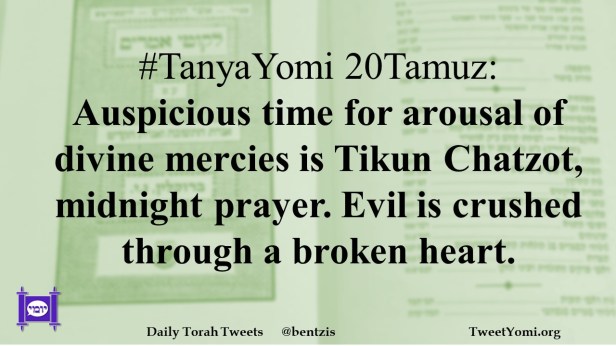 #TanyaYomi 20Tamuz: Auspicious time for arousal of divine mercies is Tikun Chatzot, midnight prayer. Evil is crushed through a broken heart.