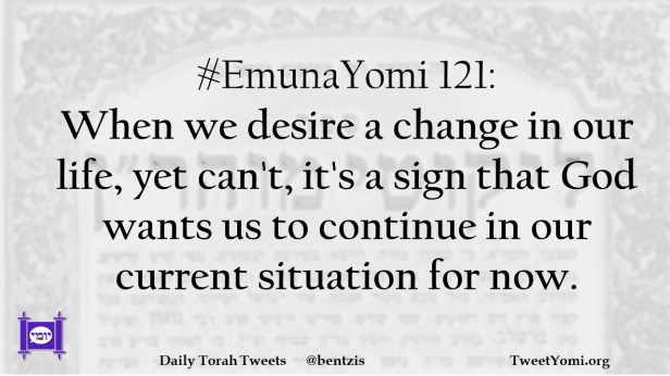 #EmunaYomi 121: When we desire a change in our life, yet can’t, it’s a sign that God wants us to continue in our current situation for now.
