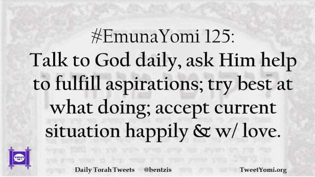 #EmunaYomi 125: Talk to God daily, ask Him help to fulfill aspirations; try best at what doing; accept current situation happily & w/ love.