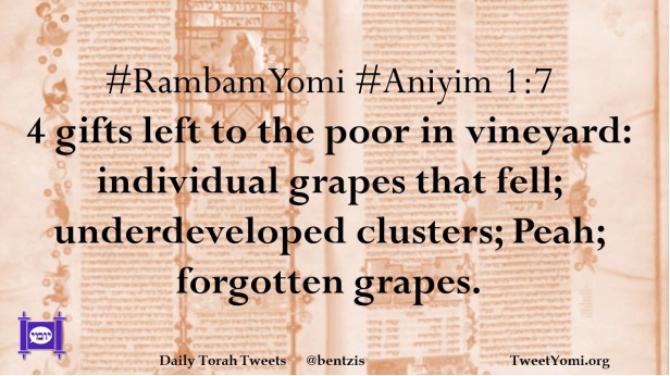 #RambamYomi #Aniyim 1:7 4 gifts left to the poor in vineyard: individual grapes that fell; underdeveloped clusters; Peah; forgotten grapes.