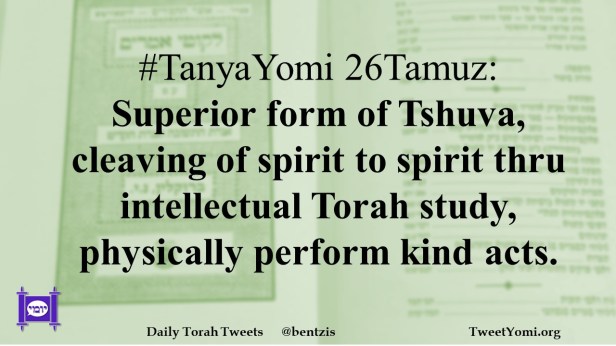 #TanyaYomi 26Tamuz: Superior form of Tshuva, cleaving of spirit to spirit thru intellectual Torah study, physically perform kind acts.