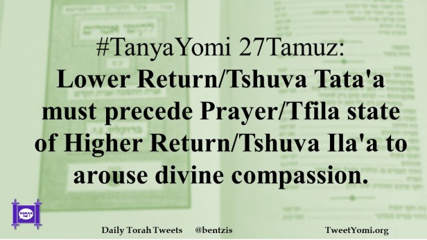 #TanyaYomi 27Tamuz: Lower Return/Tshuva Tata’a must precede Prayer/Tfila state of Higher Return/Tshuva Ila’a to arouse divine compassion.