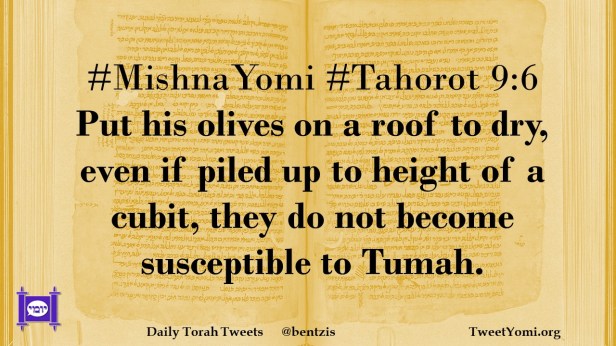 #MishnaYomi #Tahorot 9:6 Put his olives on a roof to dry, even if piled up to height of a cubit, they do not become susceptible to Tumah.