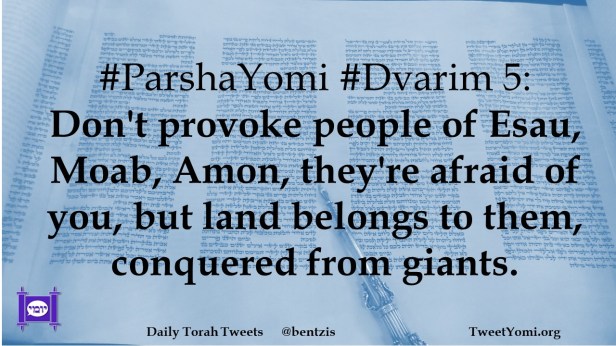 #ParshaYomi #Dvarim 5: Don’t provoke people of Esau, Moab, Amon, they’re afraid of you, but land belongs to them, conquered from giants.
