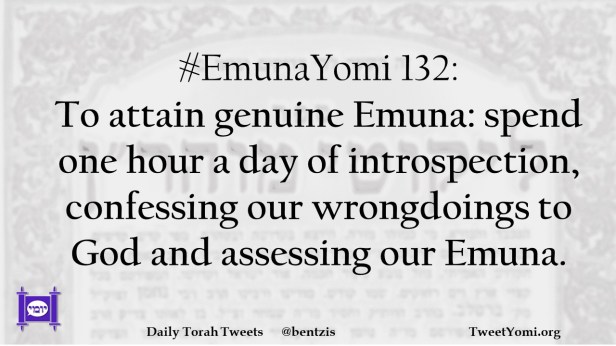 #EmunaYomi 132: To attain genuine Emuna: spend one hour a day of introspection, confessing our wrongdoings to God and assessing our Emuna.
