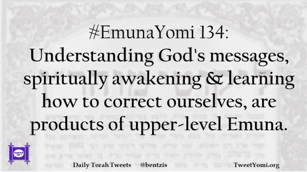 #EmunaYomi 134: Understanding God’s messages, spiritually awakening & learning how to correct ourselves, are products of upper-level Emuna.