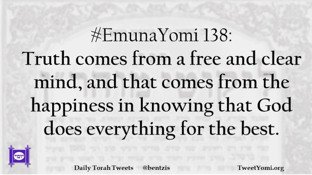 #EmunaYomi 138: Truth comes from a free and clear mind, and that comes from the happiness in knowing that God does everything for the best.