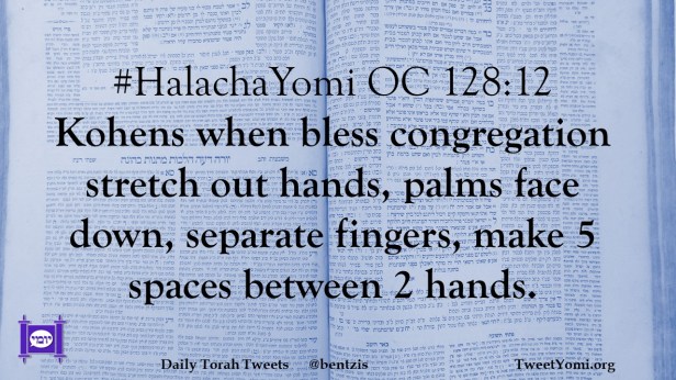 #HalachaYomi OC 128:12 Kohens when bless congregation stretch out hands, palms face down, separate fingers, make 5 spaces between 2 hands.