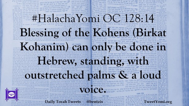 #HalachaYomi OC 128:14 Blessing of the Kohens (Birkat Kohanim) can only be done in Hebrew, standing, with outstretched palms & a loud voice.