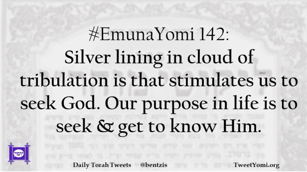#EmunaYomi 142: Silver lining in cloud of tribulation is that stimulates us to seek God. Our purpose in life is to seek & get to know Him.