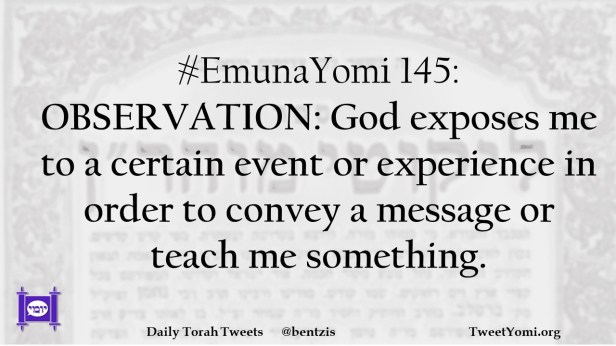 #EmunaYomi 145: OBSERVATION: God exposes me to a certain event or experience in order to convey a message or teach me something.