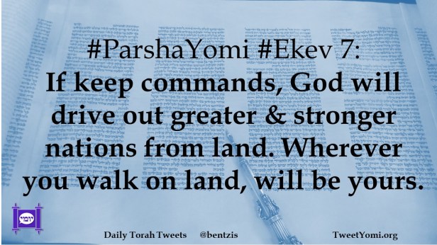 #ParshaYomi #Ekev 7: If keep commands, God will drive out greater & stronger nations from land. Wherever you walk on land, will be yours.