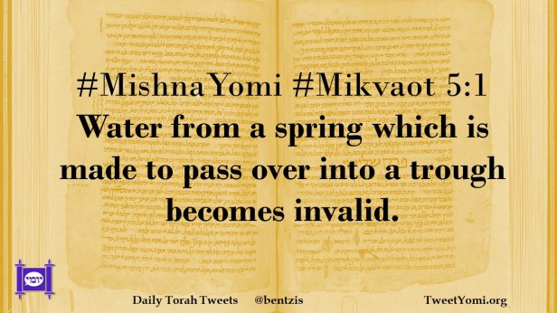 Mikvaot, MishnaYomi #MishnaYomi #Mikvaot 5:1 Date: August 22, 2021Author: ysspitz #MishnaYomi #Mikvaot 5:1 Water from a spring which is made to pass over into a trough becomes invalid. Share this: Share on X (Opens in new window) X Share on Facebook (Opens in new window) Facebook Like Loading... Related