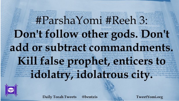 #ParshaYomi #Reeh 3: Don’t follow other gods. Don’t add or subtract commandments. Kill false prophet, enticers to idolatry, idolatrous city.