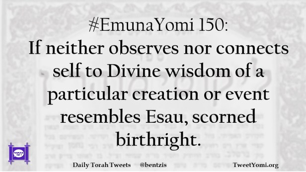 #EmunaYomi 150: If neither observes nor connects self to Divine wisdom of a particular creation or event resembles Esau, scorned birthright.