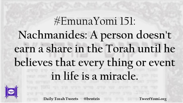 #EmunaYomi 151: Nachmanides: A person doesn’t earn a share in the Torah until he believes that every thing or event in life is a miracle.