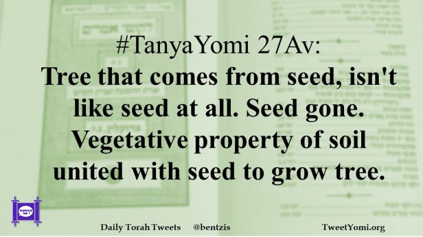 #TanyaYomi 27Av: Tree that comes from seed, isn’t like seed at all. Seed gone. Vegetative property of soil united with seed to grow tree.