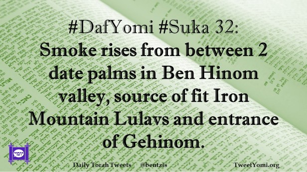 DafYomi, Suka #DafYomi #Suka 32 Date: August 25, 2021Author: ysspitz #DafYomi #Suka 32: Smoke rises from between 2 date palms in Ben Hinom valley, source of fit Iron Mountain Lulavs and entrance of Gehinom. Share this: Share on X (Opens in new window) X Share on Facebook (Opens in new window) Facebook Like Loading... Related