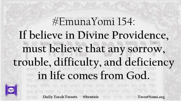 #EmunaYomi 154: If believe in Divine Providence, must believe that any sorrow, trouble, difficulty, and deficiency in life comes from God.