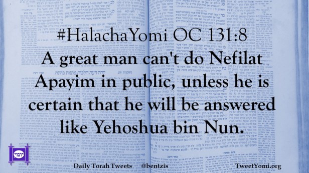 #HalachaYomi OC 131:8 A great man can’t do Nefilat Apayim in public, unless he is certain that he will be answered like Yehoshua bin Nun.