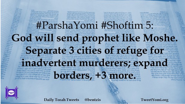 #ParshaYomi #Shoftim 5: God will send prophet like Moshe. Separate 3 cities of refuge for inadvertent murderers; expand borders, +3 more.