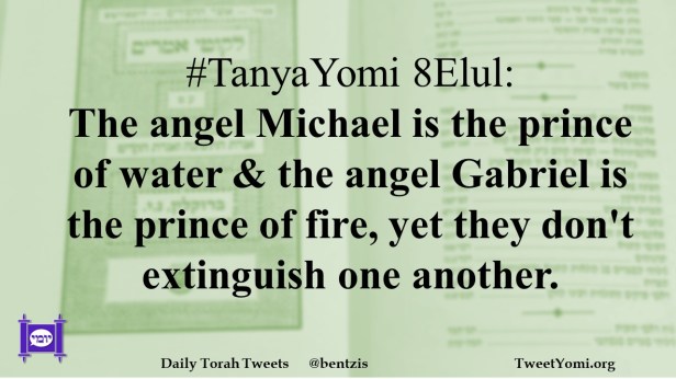 #TanyaYomi 8Elul: The angel Michael is the prince of water & the angel Gabriel is the prince of fire, yet they don’t extinguish one another.