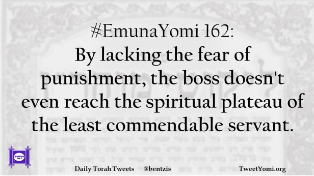 #EmunaYomi 162: By lacking the fear of punishment, the boss doesn’t even reach the spiritual plateau of the least commendable servant.