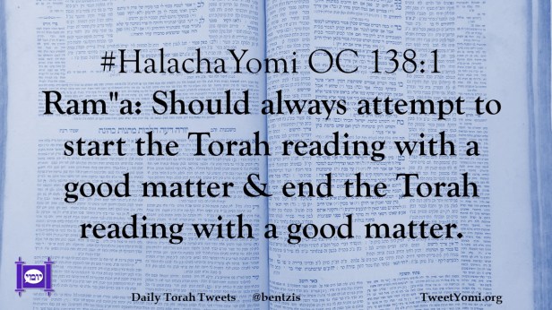 #HalachaYomi OC 138:1 Ram”a: Should always attempt to start the Torah reading with a good matter & end the Torah reading with a good matter.