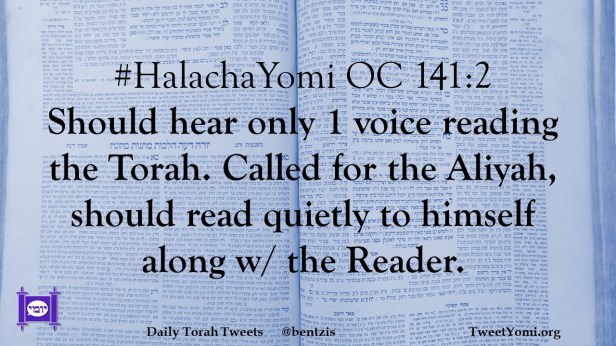 #HalachaYomi OC 141:2 Should hear only 1 voice reading the Torah. Called for the Aliyah, should read quietly to himself along w/ the Reader.