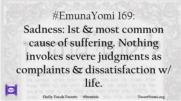 #EmunaYomi 169: Sadness: 1st & most common cause of suffering. Nothing invokes severe judgments as complaints & dissatisfaction w/ life.