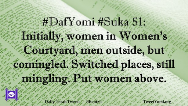 DafYomi, Suka #DafYomi #Suka 51 Date: August 30, 2021Author: ysspitz #DafYomi #Suka 51: Initially, women in Women’s Courtyard, men outside, but comingled. Switched places, still mingling. Put women above. Share this: Share on X (Opens in new window) X Share on Facebook (Opens in new window) Facebook Like Loading... Related