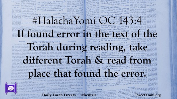 #HalachaYomi OC 143:4 If found error in the text of the Torah during reading, take different Torah & read from place that found the error.