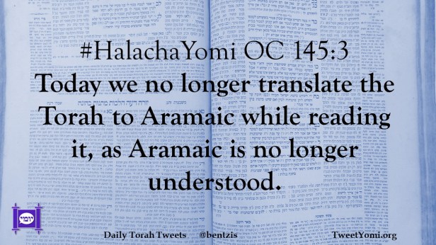 #HalachaYomi OC 145:3 Today we no longer translate the Torah to Aramaic while reading it, as Aramaic is no longer understood.
