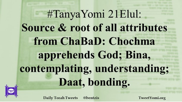 #TanyaYomi 21Elul: Source & root of all attributes from ChaBaD: Chochma apprehends God; Bina, contemplating, understanding; Daat, bonding.