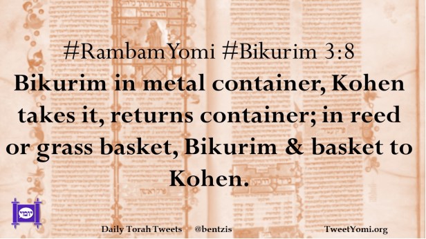 #RambamYomi #Bikurim 3:8 Bikurim in metal container, Kohen takes it, returns container; in reed or grass basket, Bikurim & basket to Kohen.