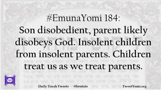 #EmunaYomi 184: Son disobedient, parent likely disobeys God. Insolent children from insolent parents. Children treat us as we treat parents.