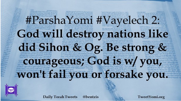 #ParshaYomi #Vayelech 2: God will destroy nations like did Sihon & Og. Be strong & courageous; God is w/ you, won’t fail you or forsake yo