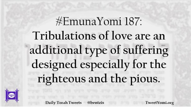 #EmunaYomi 187: Tribulations of love are an additional type of suffering designed especially for the righteous and the pious.