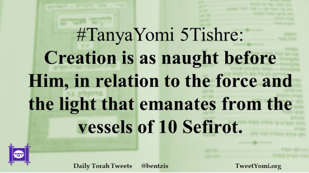 #TanyaYomi 5Tishre: Creation is as naught before Him, in relation to the force and the light that emanates from the vessels of 10 Sefirot.