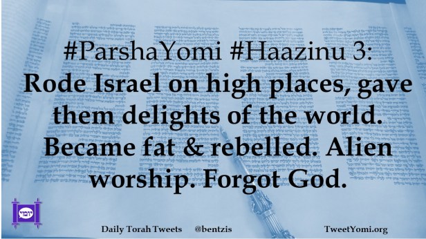 #ParshaYomi #Haazinu 3: Rode Israel on high places, gave them delights of the world. Became fat & rebelled. Alien worship. Forgot God.