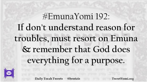 #EmunaYomi 192: If don’t understand reason for troubles, must resort on Emuna & remember that God does everything for a purpose.