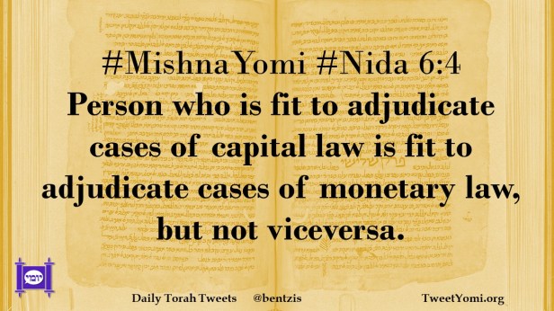 #MishnaYomi #Nida 6:4 Person who is fit to adjudicate cases of capital law is fit to adjudicate cases of monetary law, but not viceversa.