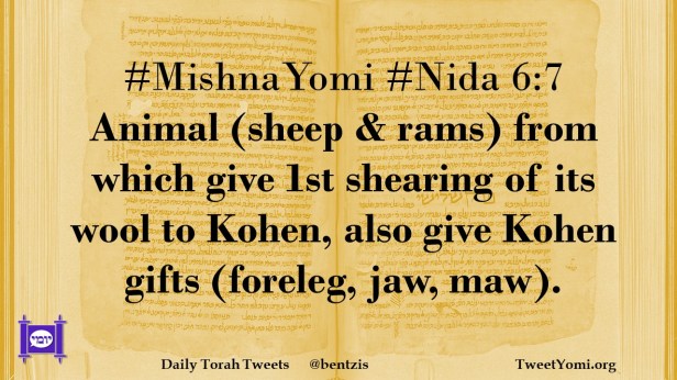 #MishnaYomi #Nida 6:7 Animal (sheep & rams) from which give 1st shearing of its wool to Kohen, also give Kohen gifts (foreleg, jaw, maw).