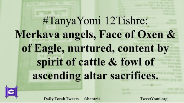 #TanyaYomi 12Tishre: Merkava angels, Face of Oxen & of Eagle, nurtured, content by spirit of cattle & fowl of ascending altar sacrifices.